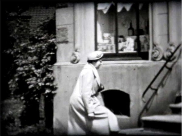 Gertrud Steveling vor der Bäckerei und Kolonialwarengeschäft: Ludwig Steveling Hangeneystr. 117 Schmalfilmaufnahme von Emil Steveling von 1955